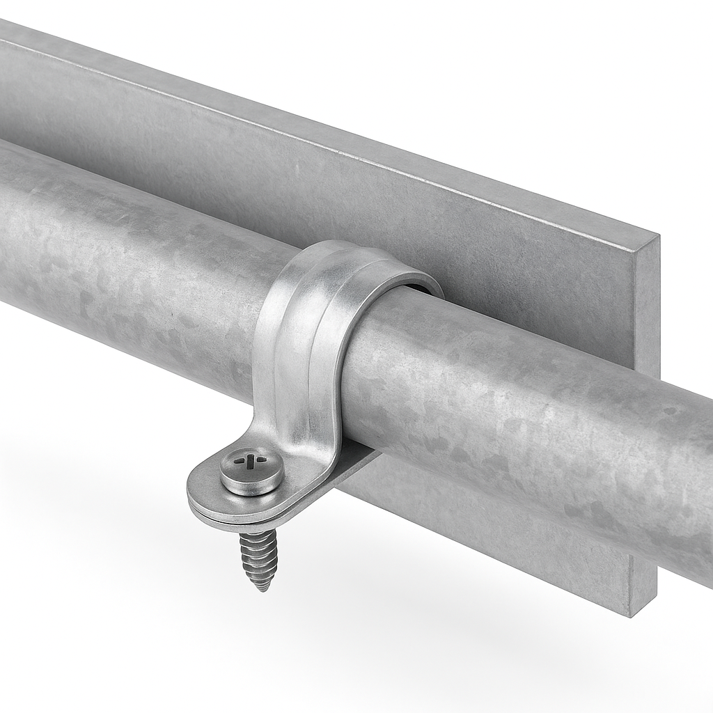 Sistema de fijación de tuberías conduit metálicas o plásticas a muros o estructuras, mediante abrazaderas o grapas galvanizadas. Utilizado para canalizar cableado eléctrico en instalaciones expuestas.
